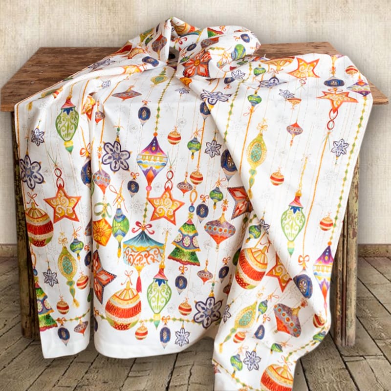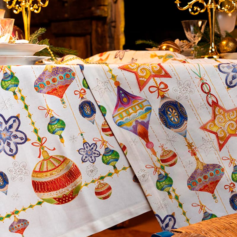 Nuestros manteles se cortan a mano uno a uno y se terminan con una esquina mitrada, manteniendo la tradición de alta costura en todos nuestros productos.