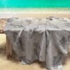 - Nuestros manteles se cortan a mano uno a uno y se terminan con una esquina mitrada, manteniendo la tradición de alta costura de todos nuestros productos.