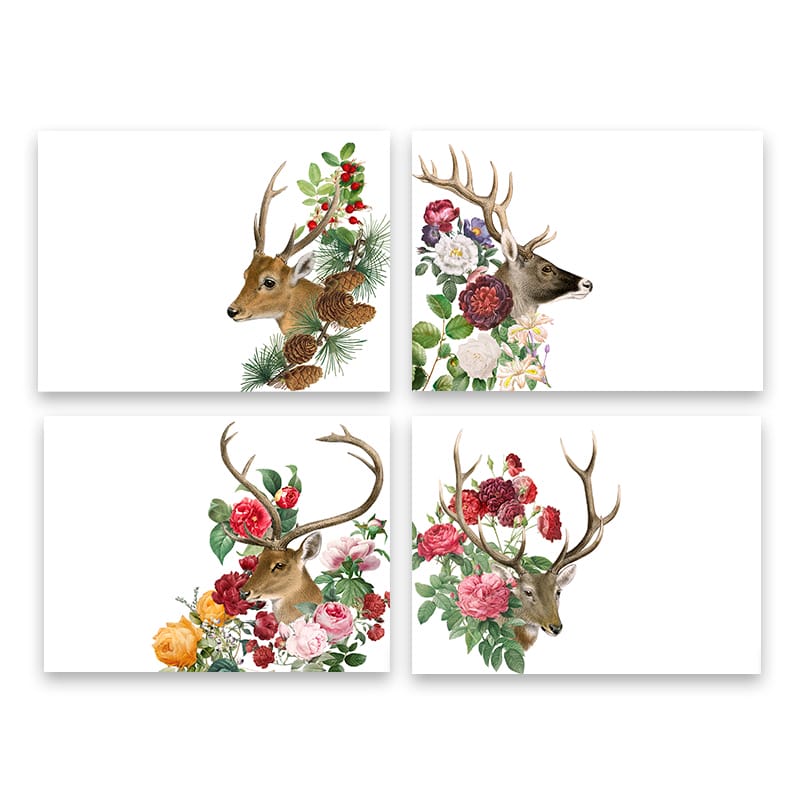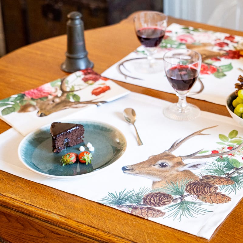 Set de 4 individuales Cervi – 100% algodón satinado anti manchas. El juego se compone de 4 individuales, todos con diseños diferentes lo que les da un toque único y moderno.