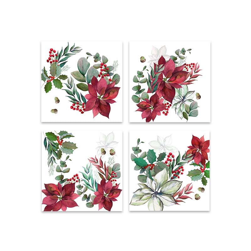 Set de 4 servilletas Yule 100% Lino. El juego se compone de 4 servilletas, todas con diseños diferentes lo que les da un toque único y moderno.